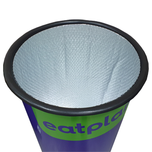 For chilled food or drink sampling we can install foil insulation inside the sampling bin which helps keep chilled products stay at their required temperature for longer periods. We recommend adding a lid too which helps the keep the cool in and the heat out.